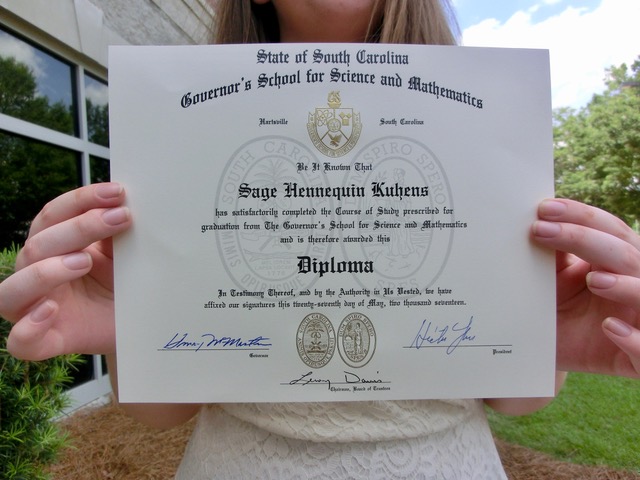 Sage attends the SC Governor's School as a member of the Class of 2017
