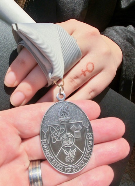 The medal that accompanies Sage's GSSM degree: